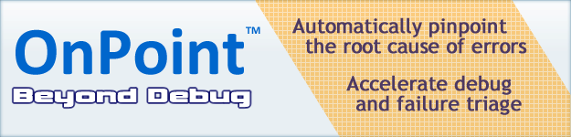 OnPoint™ picks-up where conventional verification tools leave off. It helps with high level failure triage by binning the errors and by determining whether regression failures are caused by the same or by distinct error sources. It also performs low level root cause analysis by automatically pointing to the lines of code where the problem can be fixed and by suggesting corrections. OnPoint improves productivity dramatically every time debugging is required during verification. It saves months of manual effort and it guarantees faster design closure.